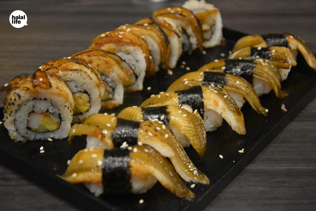 พร้อมทั้งเปิดตัวบุฟเฟ่ต์ซูชิ ซาซิมิ สำหรับคนที่ไม่อยากทานบุฟเฟ่ปิ้งย่าง ก็มีบุฟเฟ่ต์ซูชิพร้อมเสริฟ์ด้วยวัตถุดิบคุณภาพดี ราคาย่อมเยาว์ นำเข้าจากประเทศญี่ปุ่น ทั้งปลาหมึกทาโกะ ไข่ปลาแซลมอล หอยโอตาเตะจากฮอกไกโด และปลาไหลอานาโกะซึ่งล่าสุดทางร้านได้นำเข้าปลาไหลฮาลาลมาเรียบร้อยแล้วตามคำเรียกร้องของลูกค้า ซึ่งข้างต้นที่กล่าวมานั้นเป็นวัตถุดิบที่ฮาลาล 100% เรียกว่าตอบโจทย์มุสลิมที่เป็นคออาหารญี่ปุ่นได้ดีเลยทีเดียว