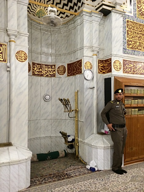 บริเวณมิฮรอบ(สถานที่นำละหมาดของอิหม่าม) เดินมาจากประตูบาบุสสลาม จะมีเจ้าหน้าที่ตำรวจยืนเฝ้ารักษาความปลอดภัยอยู่