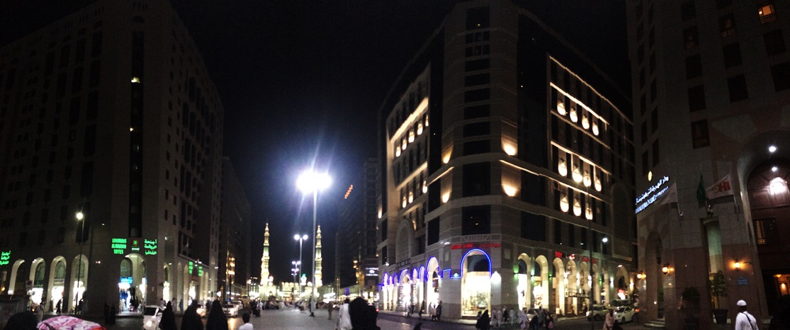 สองข้างทางเต็มไปด้วยโรงแรมที่พักระดับ5ดาว อย่างโรงแรม Madinah Hilton แถวห้างTaiba ด้านหน้าของห้างฎอยบาจะเป็นร้านขายอาหารฟาสฟู๊ตชื่อดังมากมาย เช่น KFC หรือร้าน Hardee’s แบรนด์ดังจากอเมริกา แม้แต่ ร้านกาแฟ Starbuck ที่นี่ก็ยังมี แต่ร้านฟาสฟู๊ตที่นี่จะขายแบบแพคกลับบ้าน ไม่มีที่สำหรับนั่งกิน ก็เลยจัดKFC กับ Starbuck อย่างละเซตกลับไปทานที่โรงแรม หลังละหมาดตารอเวียะฮ์ทุกคืน จะคึกคักเต็มไปด้วยการช๊อปปิ้งของผู้แสวงบุญ เนื่องจากกลางคืนอากาศไม่ร้อนมากเหมือนตอนกลางวัน