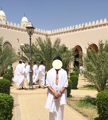 ทางคณะได้พาไปยังมัสยิด เพื่อทำการละหมาดสุนัต(ส่งเสริมให้กระทำ) ผมอาบน้ำละหมาดเสร็จก็ได้เข้าไปละหมาดสุนัตภายในมัสยิดจากนั้นได้ตั้งเจตนา(เนียต)เพื่อทำพิธีอุมเราะฮ์ ภายในมัสยิดจะมีสถานที่แยกระหว่างชายและหญิงอย่างให้เห็นชัดเจน หลังจากทุกคนได้ละหมาดและตั้งเจตนาเนียตกันเสร็จเรียบร้อยแล้ว ก็ได้ออกเดินทางไปสู่มหานครมักกะฮ์ ระยะทางกว่า 420 ก.ม ใช้เวลาในการเดินทางประมาณ 4 ชั่วโมง