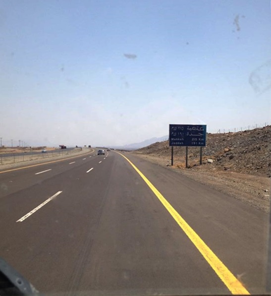 เส้นทางระหว่างมาดีนะฮ์สู่มักกะฮ์ บางทีหลับๆตื่นๆ บางทีก็กล่าวตัลบียะฮ์(ลับบัยต์กัลลอฮ์ ฮุมมาลับบัยต์ฯ) ซึ่งเป็นสิ่งที่ส่งเสริมให้กล่าวสำหรับผู้ที่เดินทางมาทำฮัจย์หรืออุมเราะฮ์ ผู้ชายให้กล่าวเสียงดังค์ ส่วนผู้หญิงกล่าวค่อยๆ สองข้างทางเป็นท้องทุ่งทะเลทรายสลับกับภูเขา บางทีก็เห็นเหวลึก และมีโอเอซิสให้เห็นอยู่ตามเส้นทาง หากใครนึกภาพไม่ออก ถนนที่ซาอุอารมณ์ประมาณ ถนนแบบ Las vegas ที่สองข้างทางแห้งแล้ง นานๆ ทีถึงจะเจอจุดพักรถ