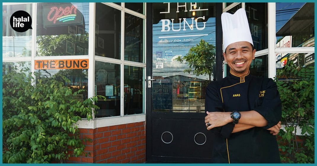 นี่คือความมุ่งมั่นของ “เชฟบัง” หรือ คุณอานัส ยงค์ฤทธิ์ เชฟเจ้าของร้านอาหารฮาลาลฟิวชั่น The Bung ย่านคู้ขวา เชฟมุสลิมที่มีประสบการณ์คลุกคลีอยู่ในครัวของโรงแรมชื่อดังมากมายในกรุงเทพฯ และยังเคยเป็นเชฟไทยในร้านอาหารที่เยอรมันและกรีซ เส้นทางอาชีพของเชฟบังนั้นแสนจะโหด มันส์ และฮา โดยเริ่มต้นจากการเรียนจบ “วิศวะไฟฟ้า”